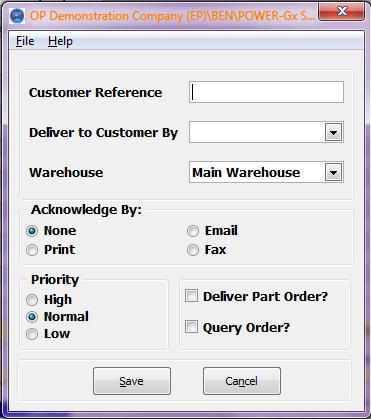 Acknowledge By, Priority, Deliver Part Order